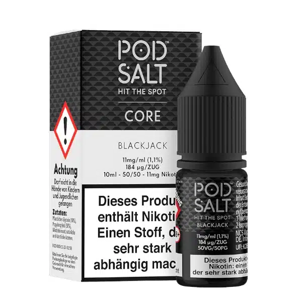 Pod Salt Blackjack 11 mg ist ein Nikotinsalz Liquid mit dem typischen Geschmack britischer Blackjack-Bonbons. Süß, aromatisch und angenehm sanft – ideal für Pod-Systeme und MTL.